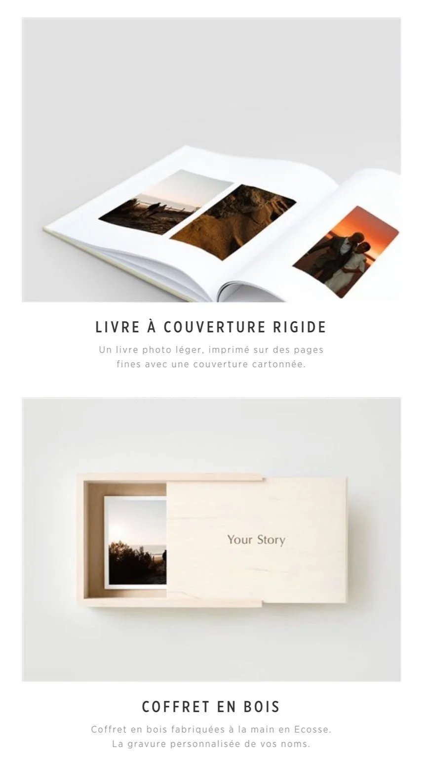Retrouvez également sur votre boutique d’impressions un large choix d’albums à couverture rigide, tirage 10x15 en lot et grand format, cadre photo en bois, carte de remerciement et bien plus encore …